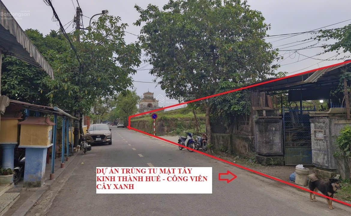 Khu đất thuộc khu thành phía Tây của Kinh thành Huế, đi bộ 9 phút đến Đại nội. Mặt trước khu đất là phố Tôn Thất Thiệp 2 làn xe, rộng 11.5m. Theo dự án cải tạo trùng tu mặt tây Kinh thành Huế, mặt trước khu đất sẽ là vườn hoa công viên. Mặt sau hiện nay là view nhìn ra hồ sen.