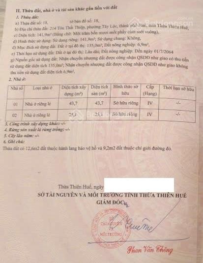 Đất nền (có nhà cấp 4 cũ) vị trí đẹp, nằm tại phố Tôn Thất Thiệp, phường Tây Lộc, Huế, với diện tích 141,9m², giá 5.1 tỷ.
