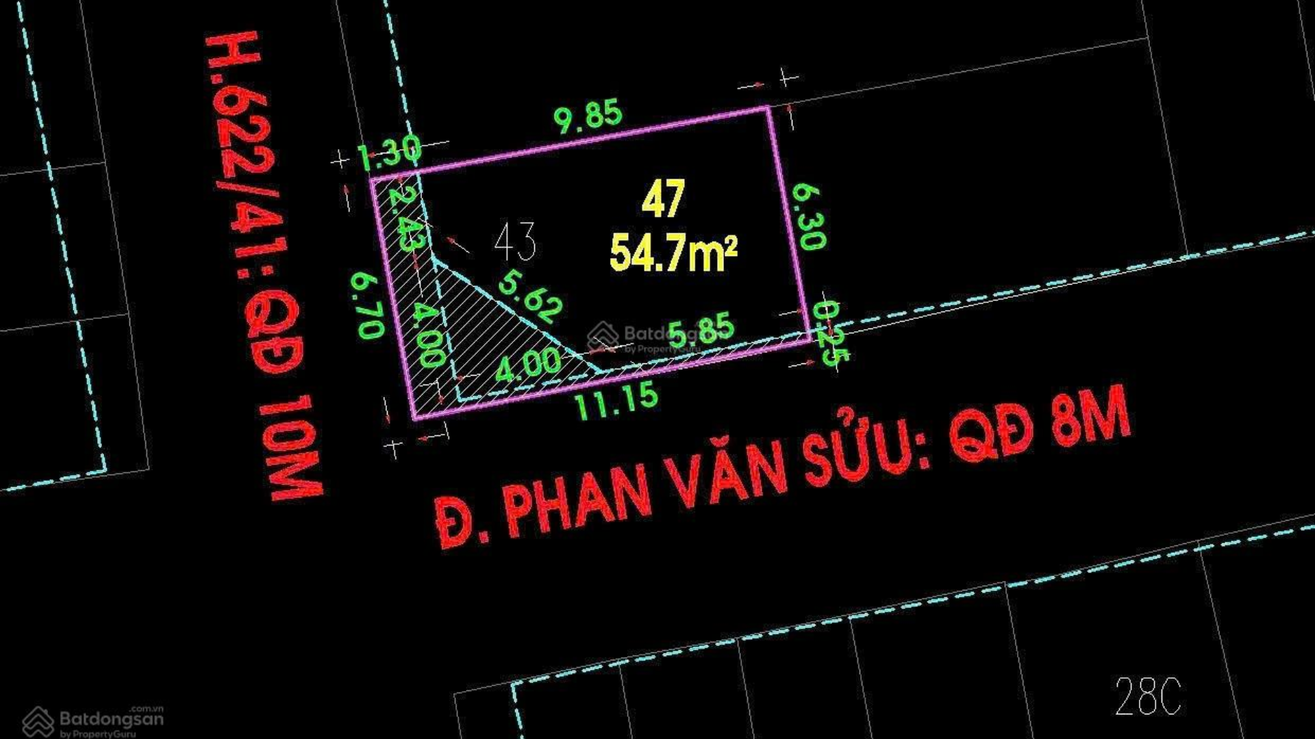 Góc hai MT xe hơi tránh 11x7m (thực tế 75m² công nhận 59.1m²). Nhà đúc BTCT 75m², 5 tấm = 330m² sàn.