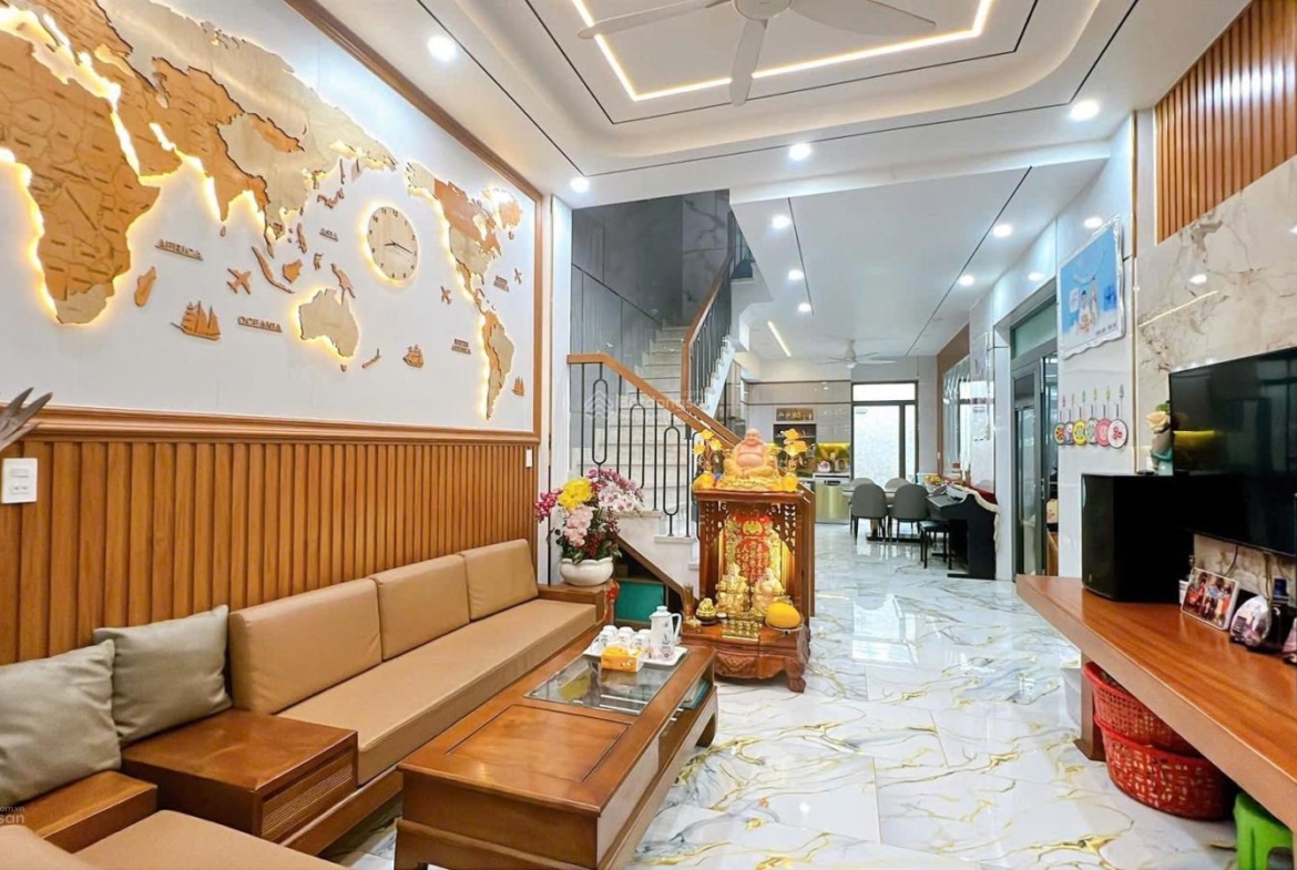 – Nhà xây kiêng cố 1 trệt, 2 lầu có 4PN, 3WC. Tặng FULL NỘI THẤT CAO CẤP. Sổ hồng riêng , hoàn công đầy đủ