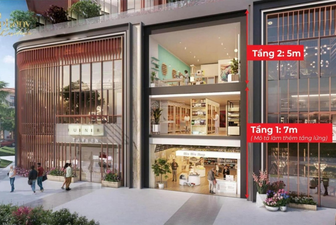 Shophouse diện tích 150 – 250m² Vốn ban đầu 25% khoảng 4 tỷ.