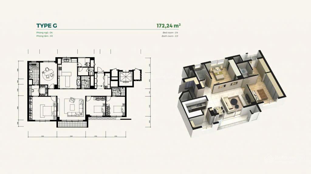 Siêu hiếm căn hộ chung cư 178m2, 4PN, 3WC tại Mailand Hanoi City chỉ 60tr/m2
